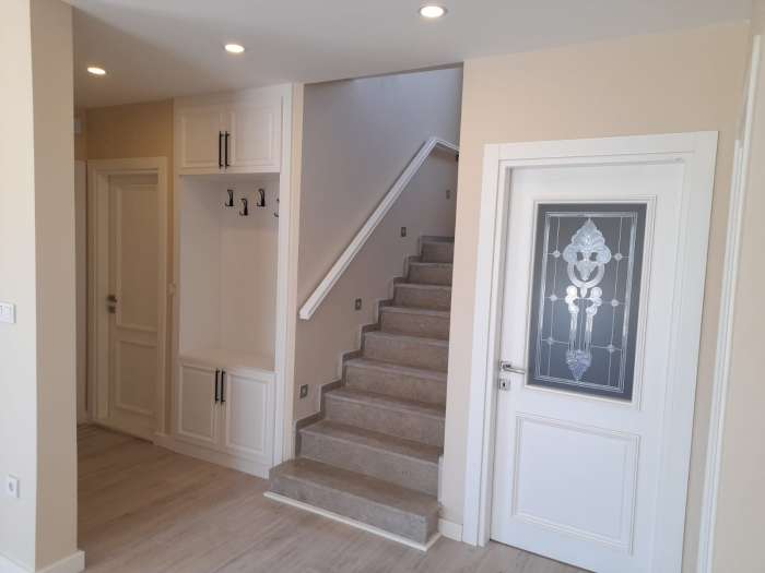 kat kaliferli, vitray camlı lake kapılar, cimston mutfak tezgahı ,elektirikli panjurlar, kumandalı açılır kapılı otapark ,
